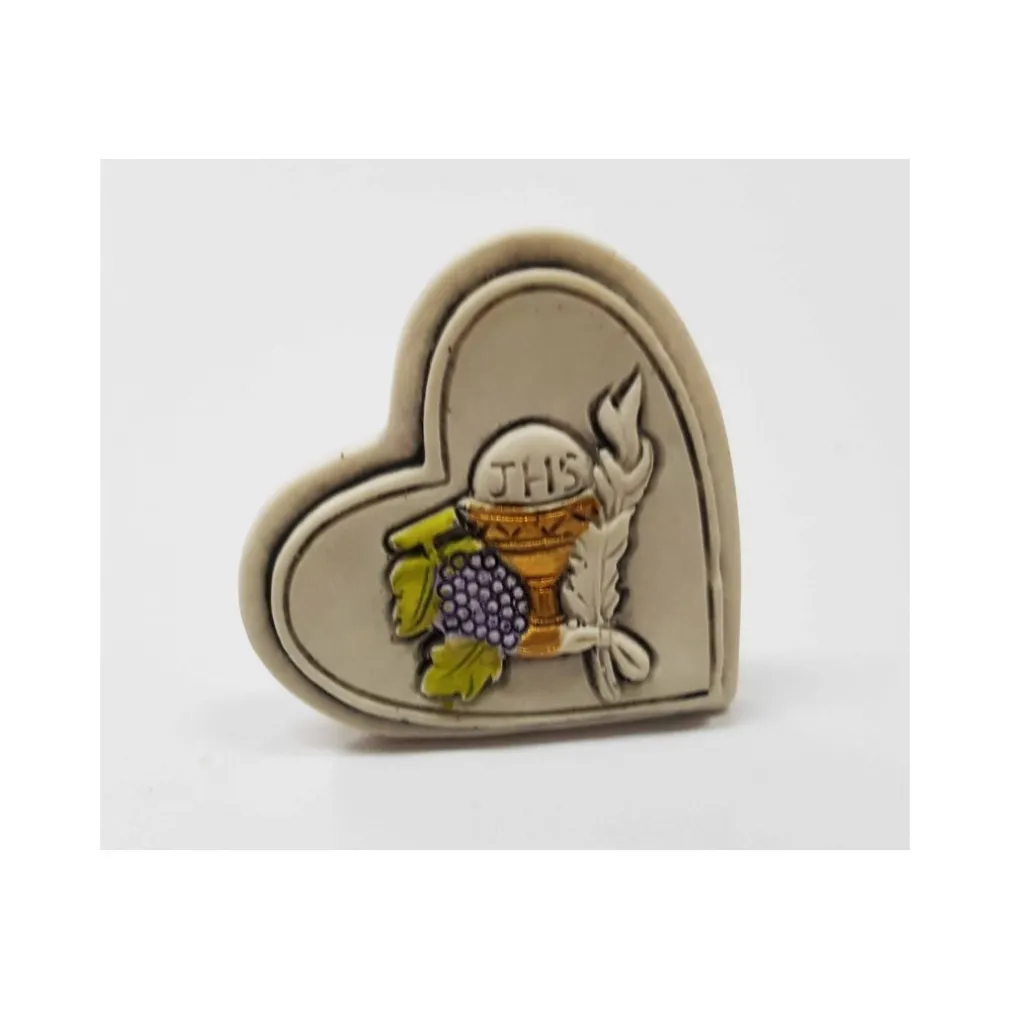 SET 12 PEZZI BOMBONIERA BOMBONIERE CUORE COMUNIONE EUCARESTIA SACRA SACRAMENTO CALICE BIANCO CERAMICA SOPRAMMOBILE APPOGGIO.
