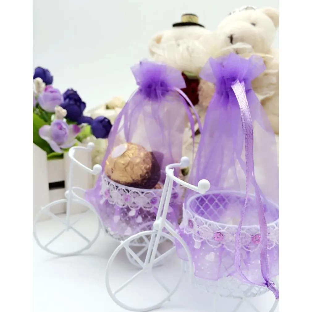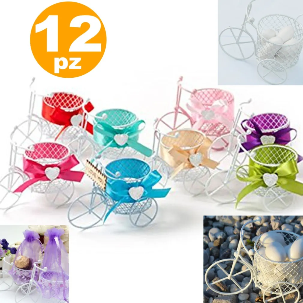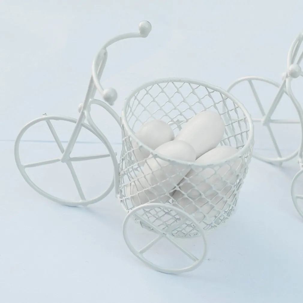 Bicicletta a tre ruote Cestino Vintage In Materiale Ferro Vernice Bianco-Portaconfetti Bomboniere Regalo