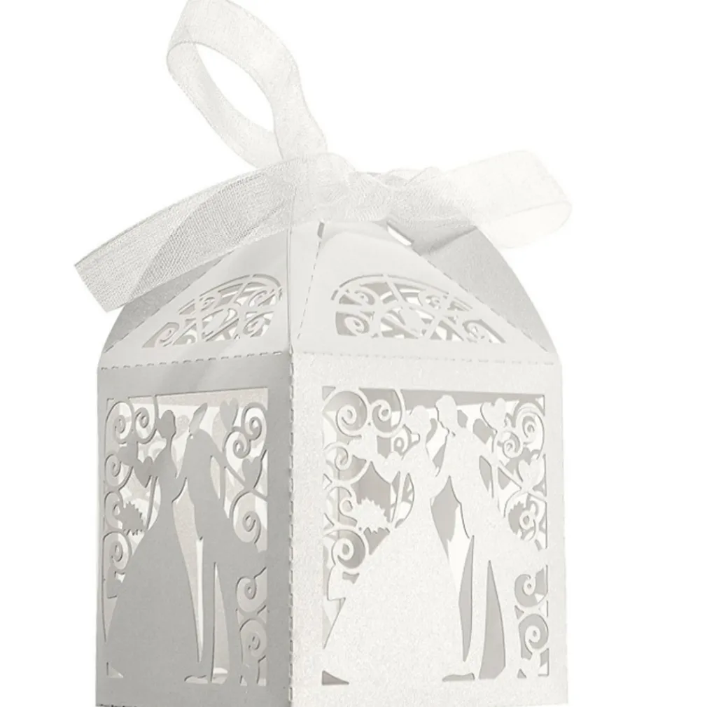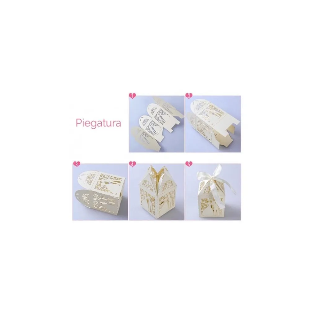 Bomboniera Scatolina Avorio Sposi Cubo Portaconfetti Segnaposto Matrimonio