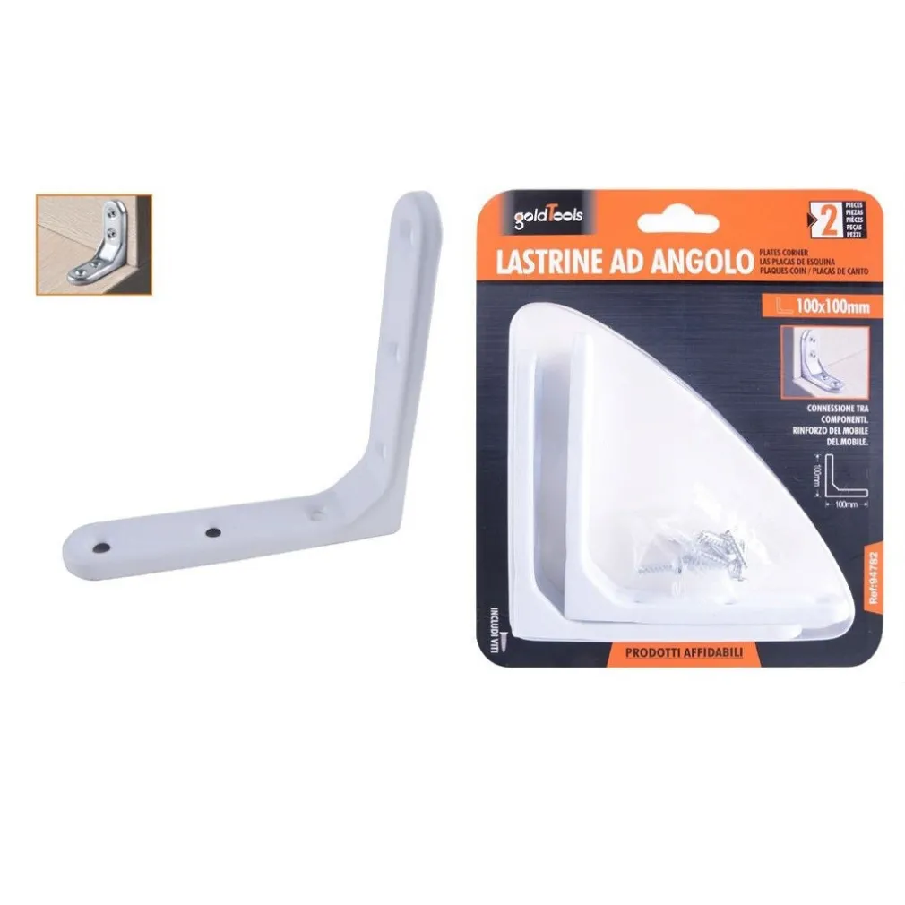 2 LASTRINE AD ANGOLO 100X100MM BIANCA SOSTEGNO STAFFA ANGOLARE VITI MOBILE 94782