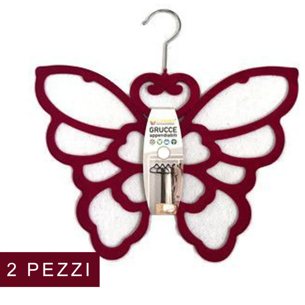 Set 2 grucce fashion a forma di farfalla, ideali per sciarpe, foulard. Le grucce a forma di farfalla renderanno il tuo armadio più ordinato ed allegro. Comode e soprattutto salvaspazio, sono utili anche per shirt e altri accessori!