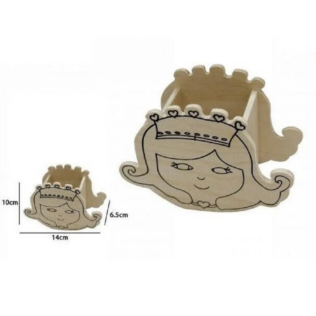 - 2 x Portapenne Contenitore Penne Matite in Legno Naturale Decoupage Principessa 53482A