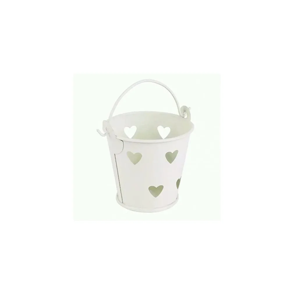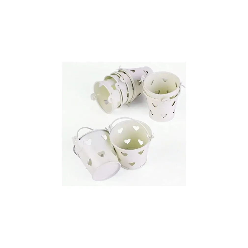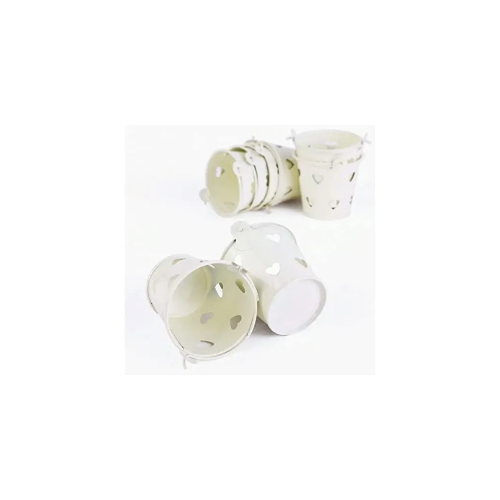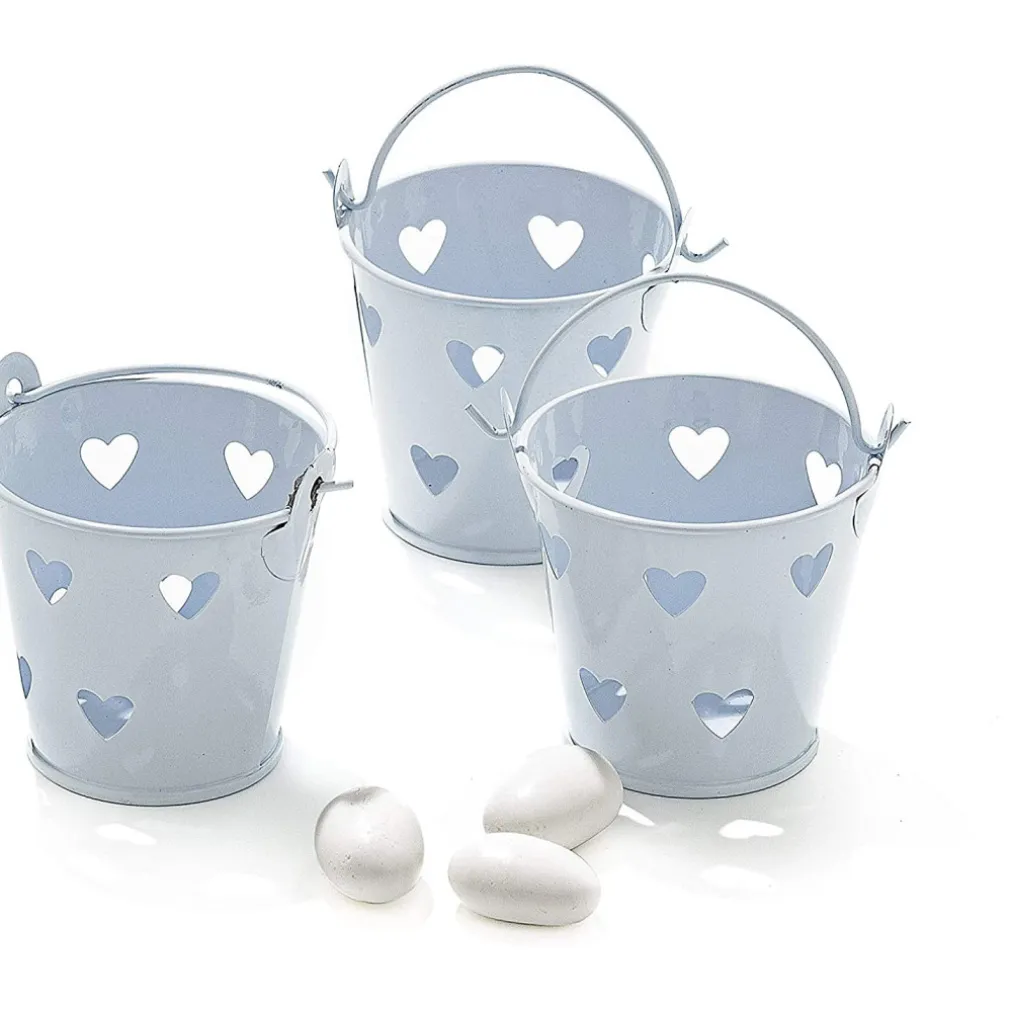 24x SECCHIELLI CON CUORI IN LATTA VERNICIATA PORTACONFETTI BOMBONIERA MATRIMONIO CRESIMA BATTESIMO COMUNIONE
