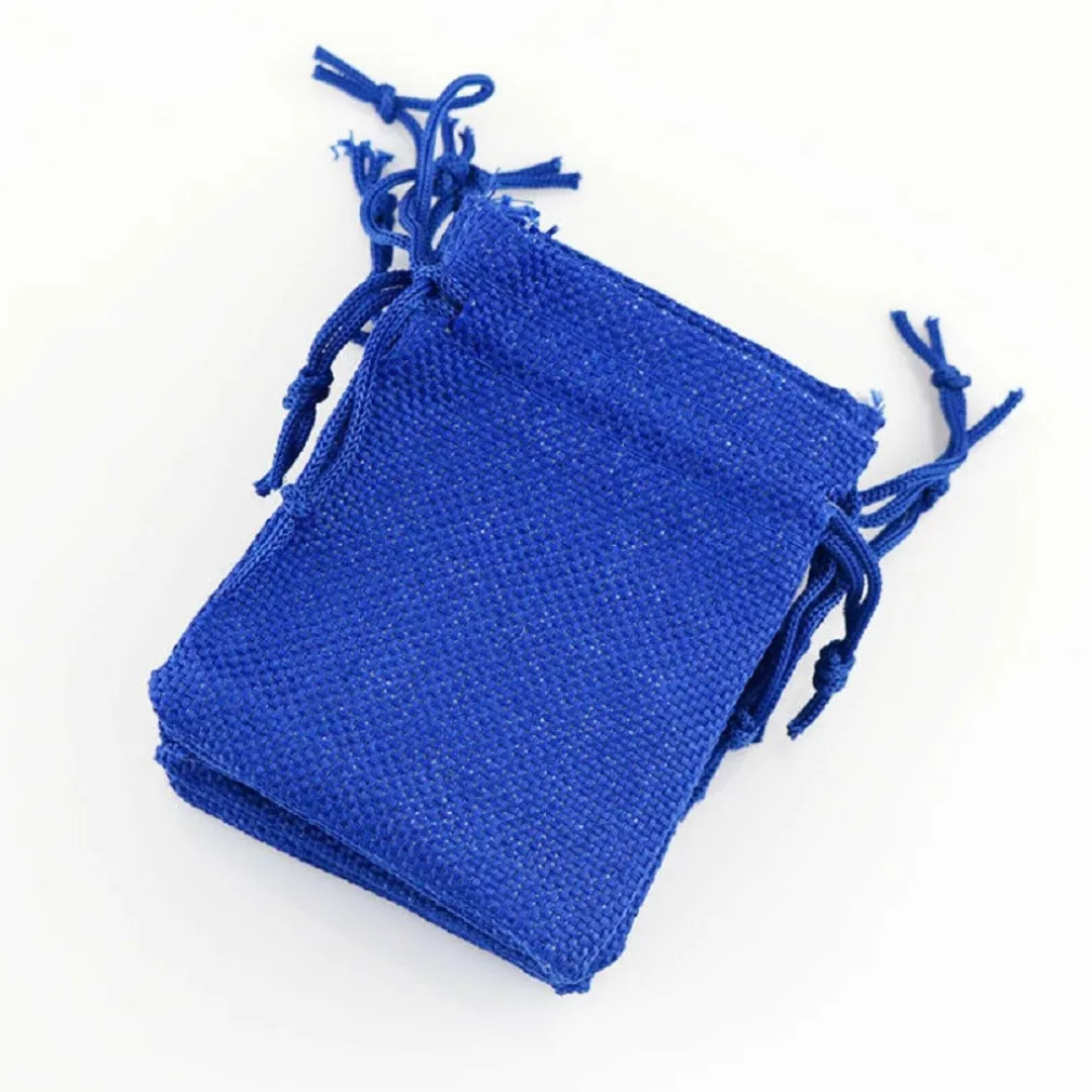 N.25 sacchetti in juta con chiusura coulisse colore BLU. Ottimo come bomboniera per occasioni come Battesimo o nascita, matrimonio, laurea o qualunque altra ricorrenza. Ideale anche come segnaposto, come confezione da regalo, portagioie. La particolarità del materiale, leggero con colori vivaci fa del sacchetto un complemento indispensabile per tutte le creazioni originali “del fai da te”. Prepara anche tu delle magnifiche bomboniere fai da te.