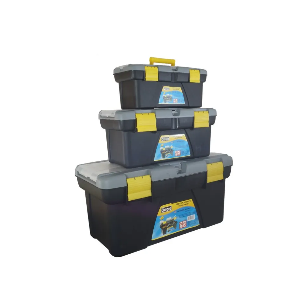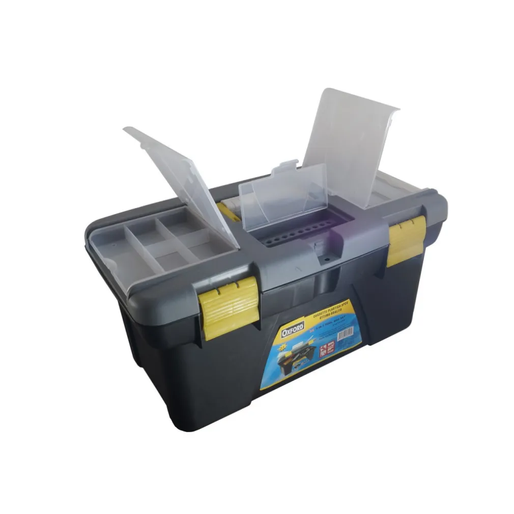 cassette porta attrezzi e minuterie in plastica dotate di ampio spazio interno per riporre attrezzi e utensili, vassoio removibile interno con organizer. Sul coperchio sono presenti alcuni scomparti per riporre viti e minuterie varie. Dotato di impugnatura a scomparsa sul coperchio.