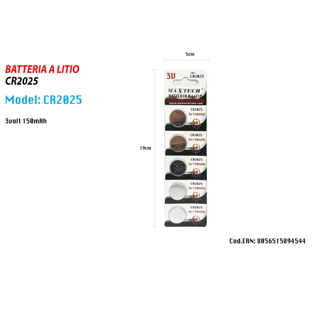 - Blister 5 Pezzi: Ogni confezione include cinque batterie CR2025, garantendo una fornitura affidabile per i tuoi dispositivi.