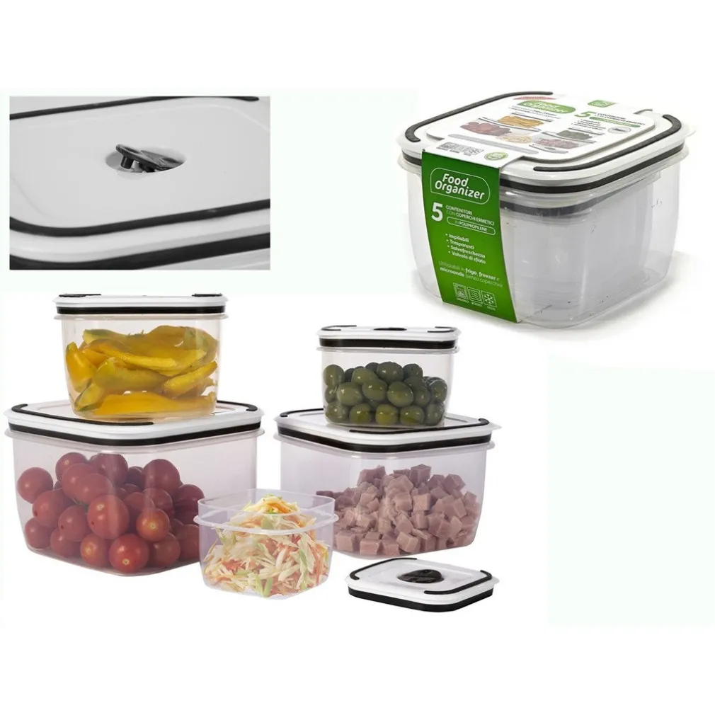 Confezione completa: Ogni set include 5 contenitori per alimenti insieme ai relativi coperchi ventilati, offrendoti una soluzione completa per la conservazione e l’organizzazione del tuo cibo.