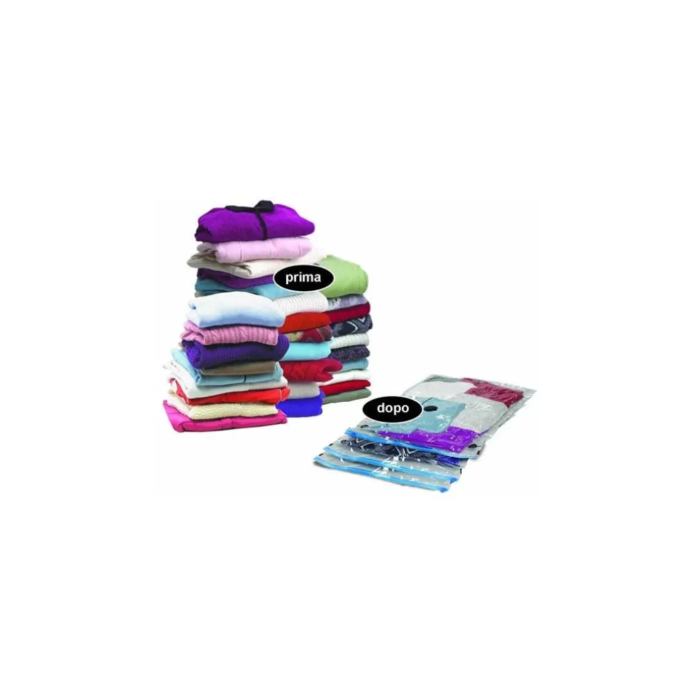 Il sacchetto salvaspazio è realizzato in materiale plastico per alimenti a cinque strati che permette il mantenimento della vostra biancheria nel tempo. Riduce il volume della vostra biancheria. Ideale per cantine, barche, campers, roulottes, ripostigli, ambienti umidi ecc.