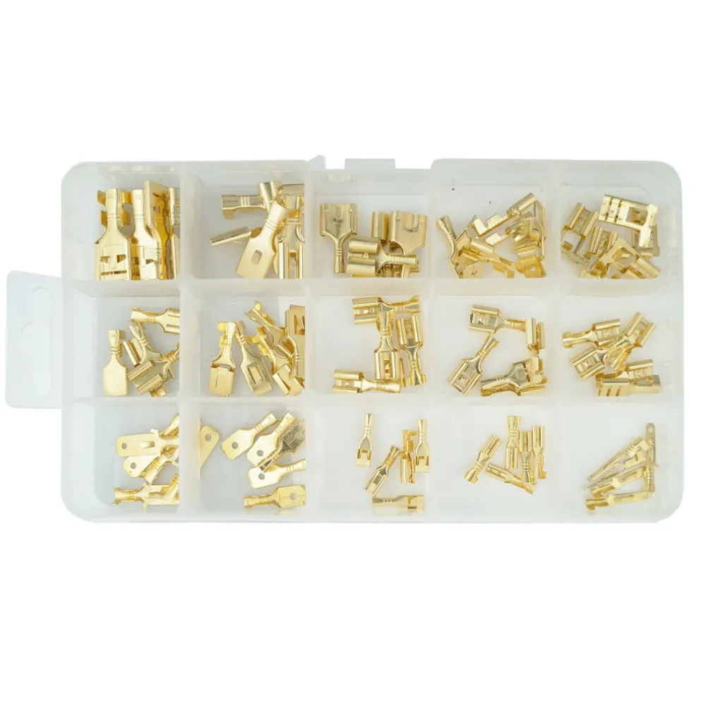 pratico e comodo set di 75 pz connettori piatti ad innesto rapido femmina non isolato di varie misure per diversi tipi di utilizzo.