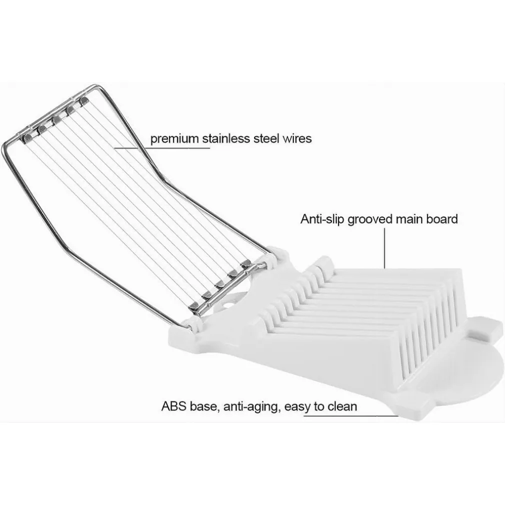 Versatilità senza pari: Questo strumento di taglio creativo è ideale per una vasta gamma di ingredienti, tra cui carne in scatola, formaggio, prosciutto, uova sode e molto altro ancora. Con 10 fili in acciaio inossidabile che possono tagliare il cibo in 11 fette, hai la precisione che desideri in cucina.