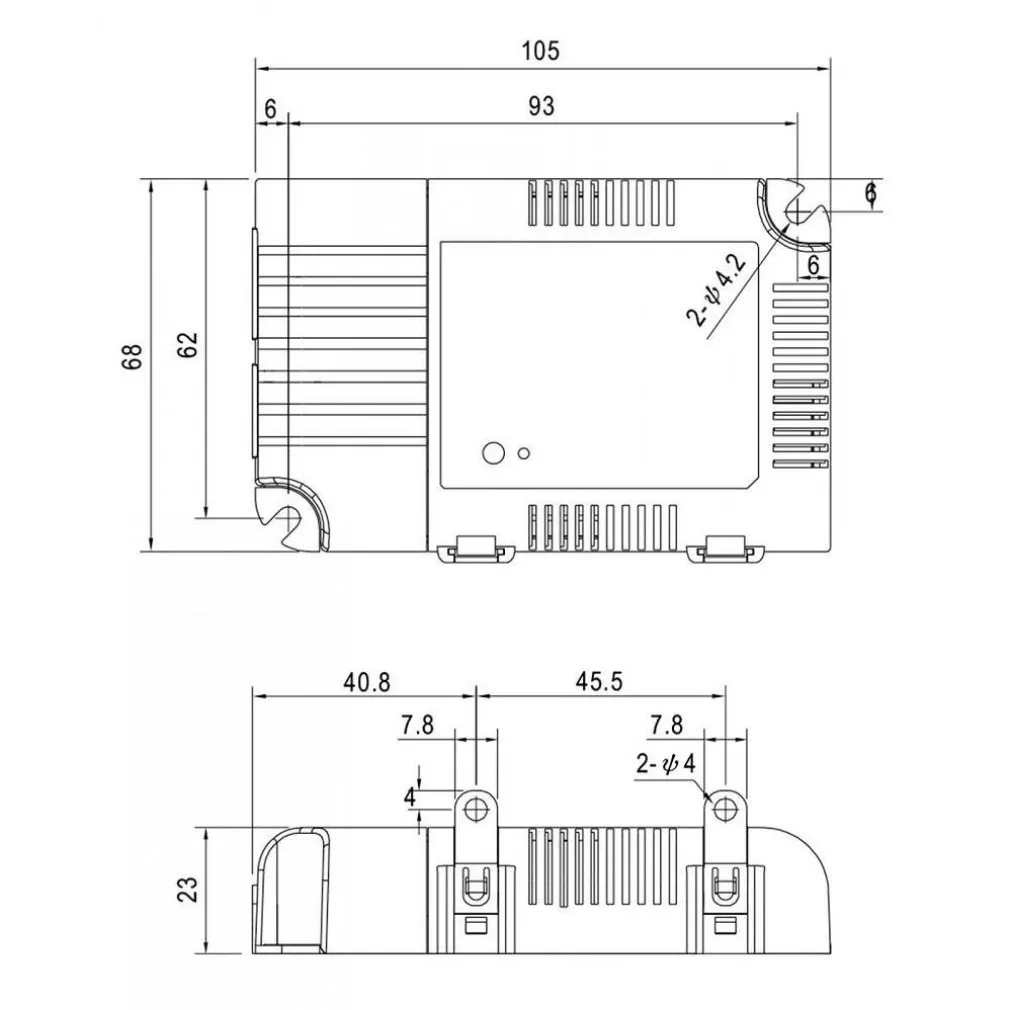 - Dimensioni alimentatore: 105mm x 68mm x 23mm