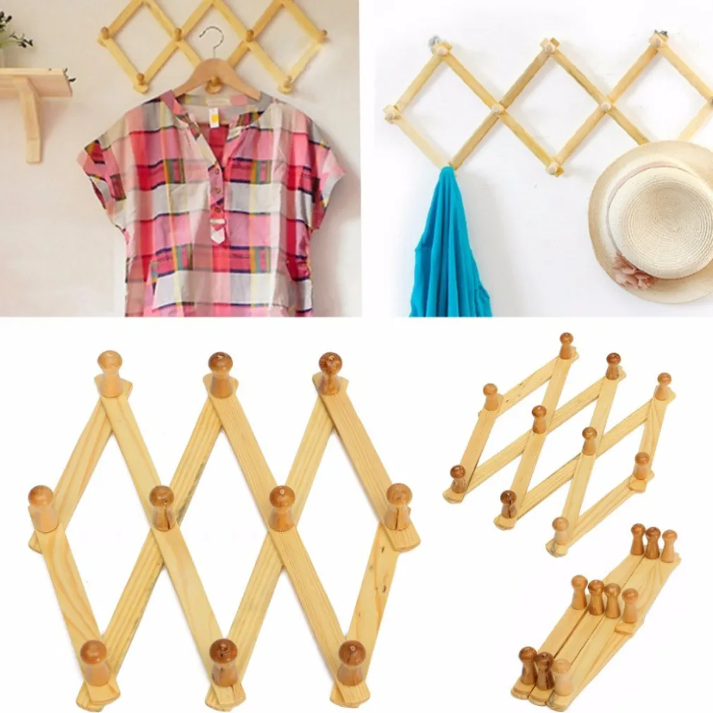 Appendiabiti Appendipanni da Parete in Legno – 10 Posti a Fisarmonica Estensibile