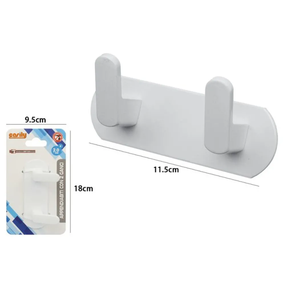 APPENDIABITI CON 2 GANCI APPENDINO PORTASCIUGAMANO BAGNO CASA CUCINA BIANCO 59741