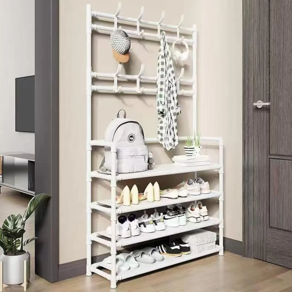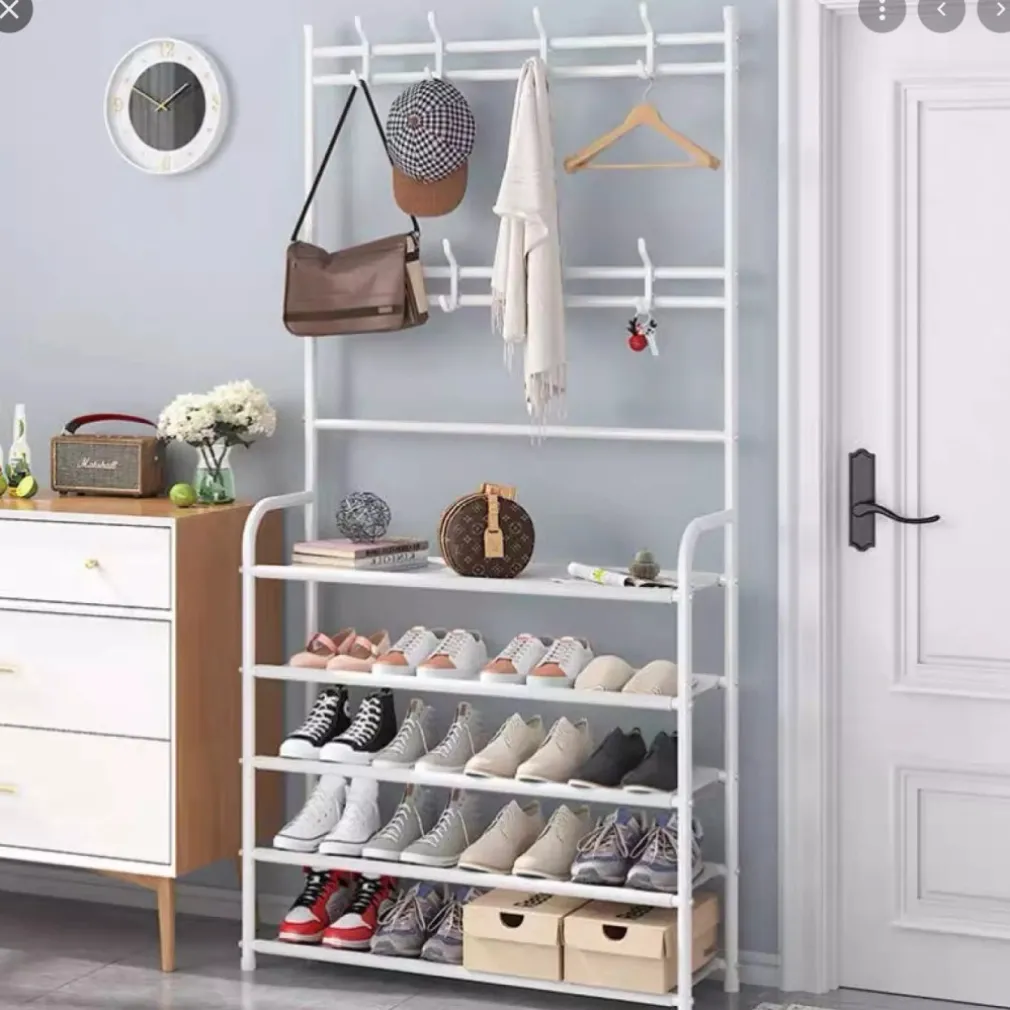 La parte superiore funziona da appendiabiti ed è fornita di ben 8 Ganci dove è possibile appendere abiti e accessori come cappotti, camicie cappelli, ombrelli e tutto ciò che si vuole.