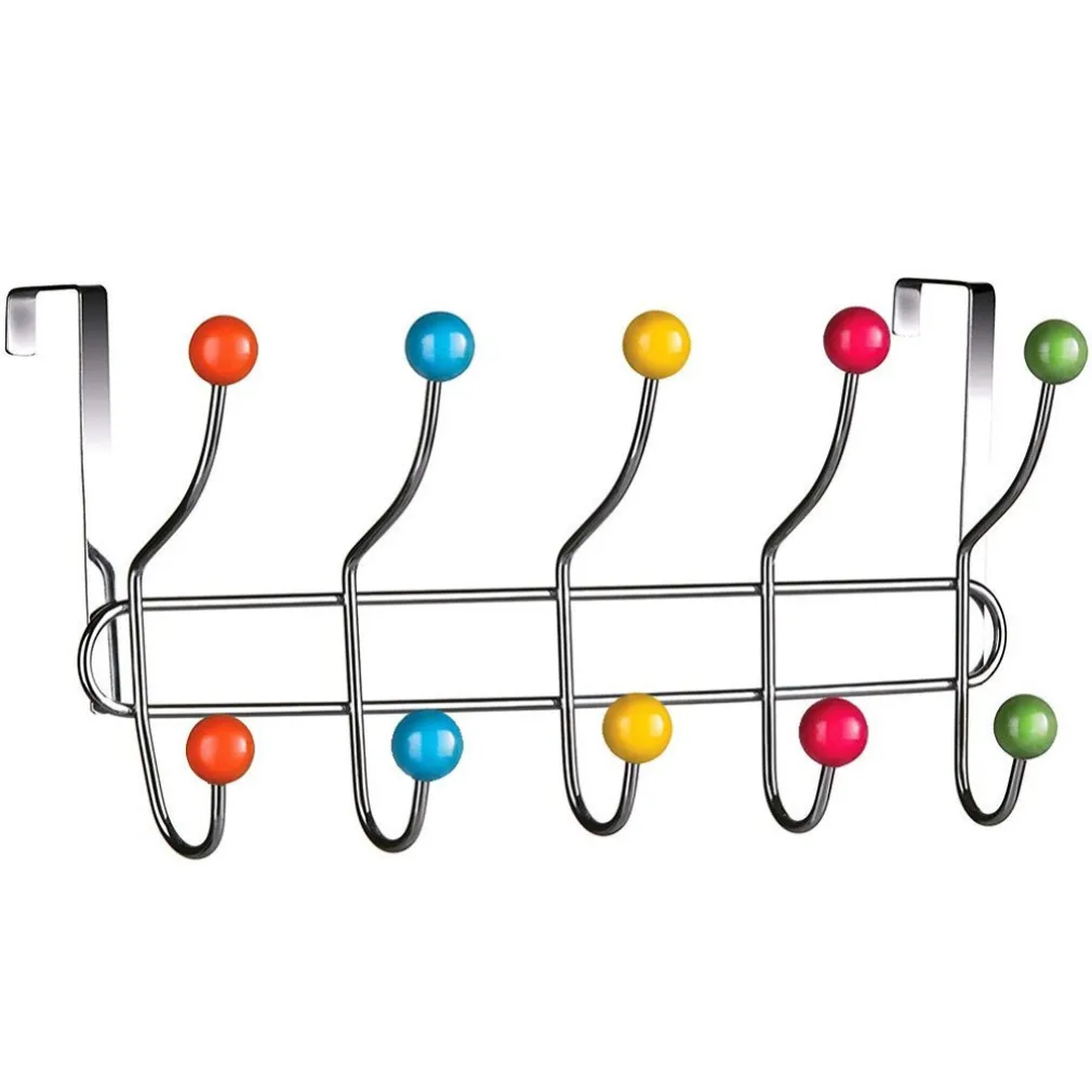 - 1 x Appendiabiti da Porta con 10 Ganci e Pomelli Multicolore Gancio Dietro porta
