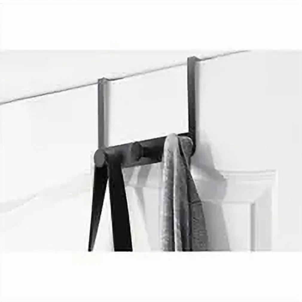 Appendiabiti da Porta con 3 Ganci 19.5×11.5cm Nero per Asciugamani e Vestiti 87776