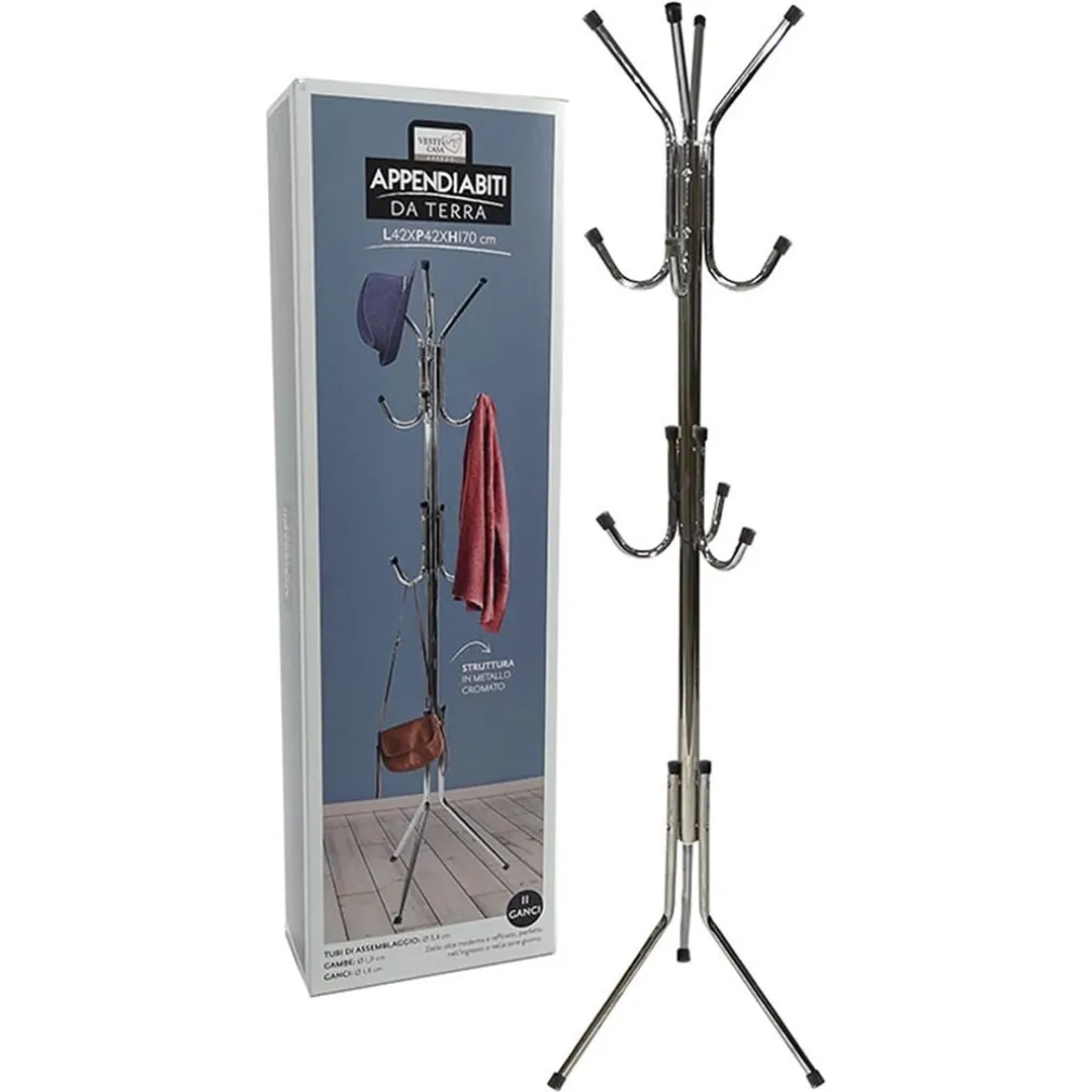 Dai un tocco di stile e praticità alla tua casa con il nostro appendiabiti da terra 170 cm, un complemento d’arredo moderno e raffinato, perfetto per ingresso, salotto, camera da letto o ufficio. Grazie alla sua struttura in metallo cromato e ai suoi 11 ganci, questo attaccapanni offre la soluzione ideale per appendere giacche, cappotti, borse e accessori con ordine ed eleganza.