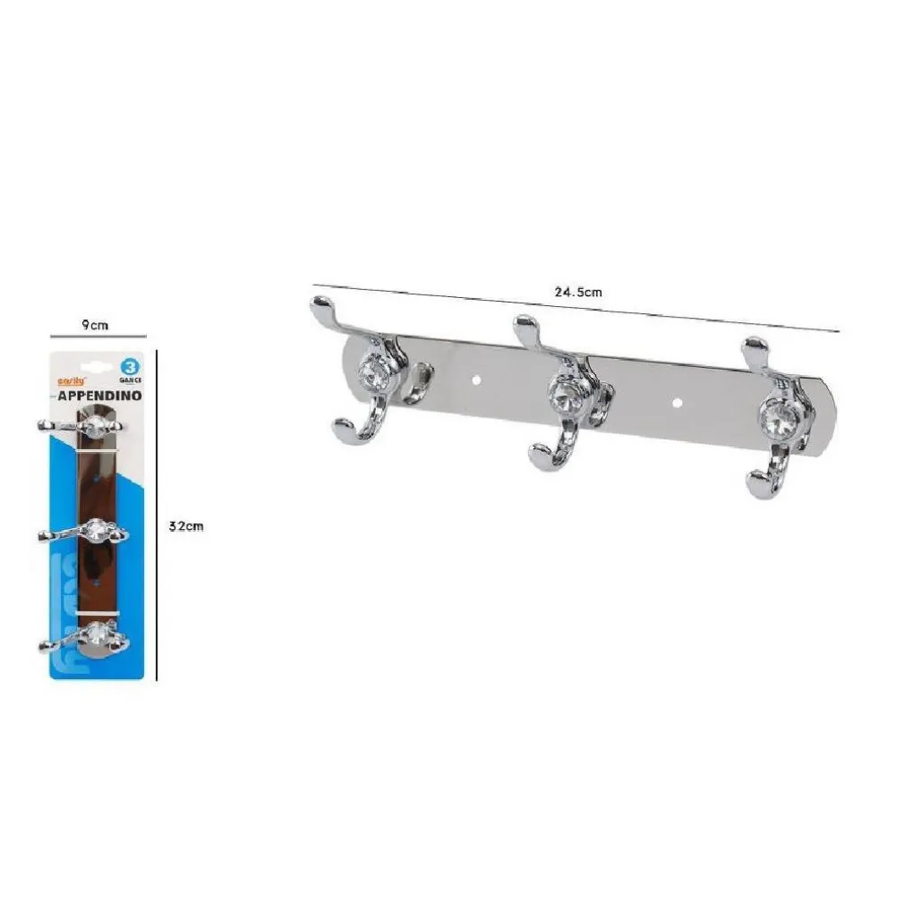 Appendino Appendi Porta Asciugamani con 3 Ganci Doppio Bagno – Diamante 52173