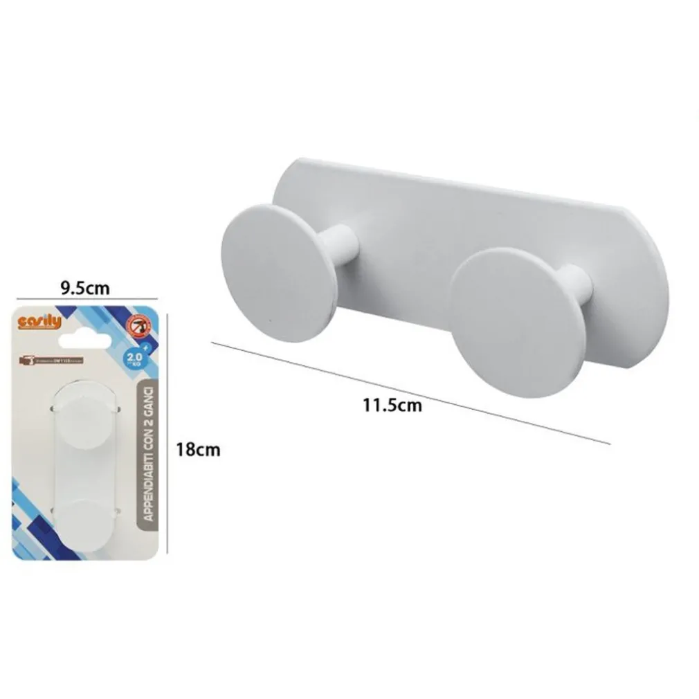 APPENDINO CON 2 GANCI APPENDI PORTA ASCIUGAMANO A 2 POSTI BAGNO CASA BIANCO 59771