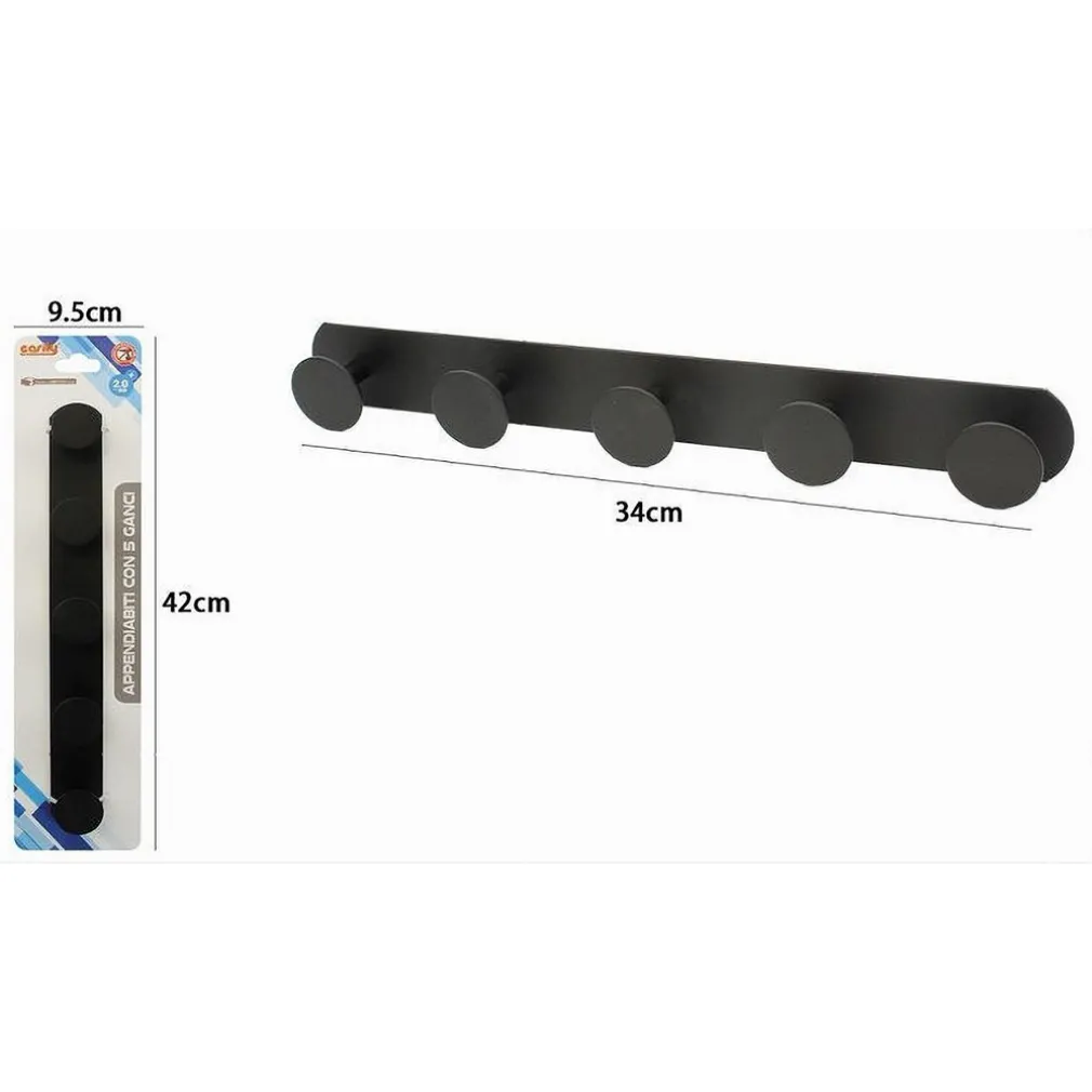 APPENDINO CON 5 GANCI APPENDI PORTA ASCIUGAMANO A 5 POSTI BAGNO CASA NERO 59769