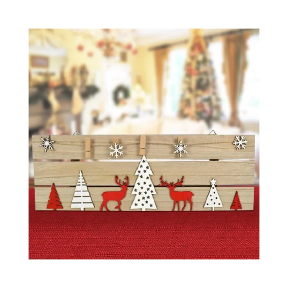 Con l’appendino natalizio in legno con mollette e decorazioni, potrai ricreare una bellissima atmosfera natalizia a casa tua. Realizzato interamente in legno dotato di mollettine dove è possibile appendere foto, bigliettini e tanto altro, decorato con disegni in rilievo di renne, fiocchi di neve e alberi di natale. Grazie ai due appendini può essere applicato ovunque si voglia.