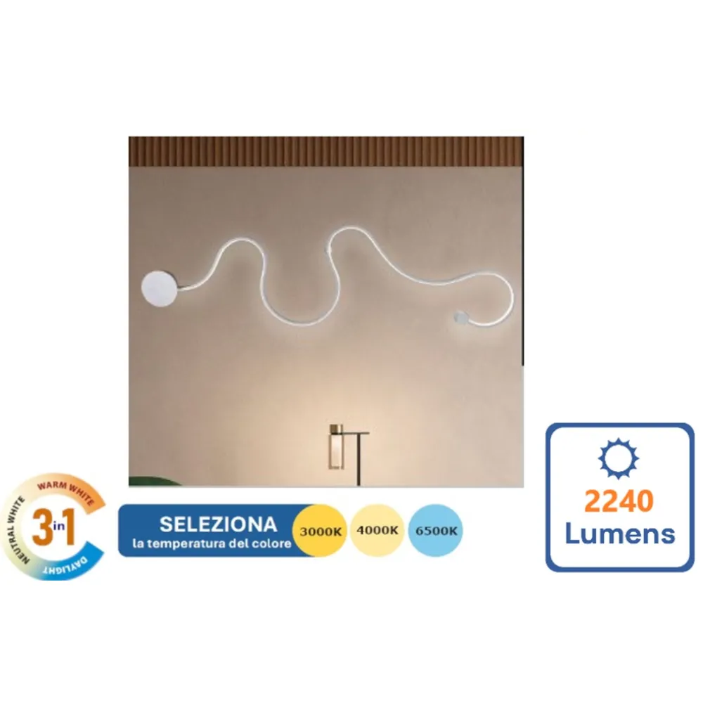 Se desideri una lampada LED da parete moderna, che illumini con carattere e aggiunga personalità ai tuoi spazi, l’Applique da Muro LED 28W Design a Serpente Bianco Tonalità Luce 3in1 2240lm E69-B3C è la scelta ideale.