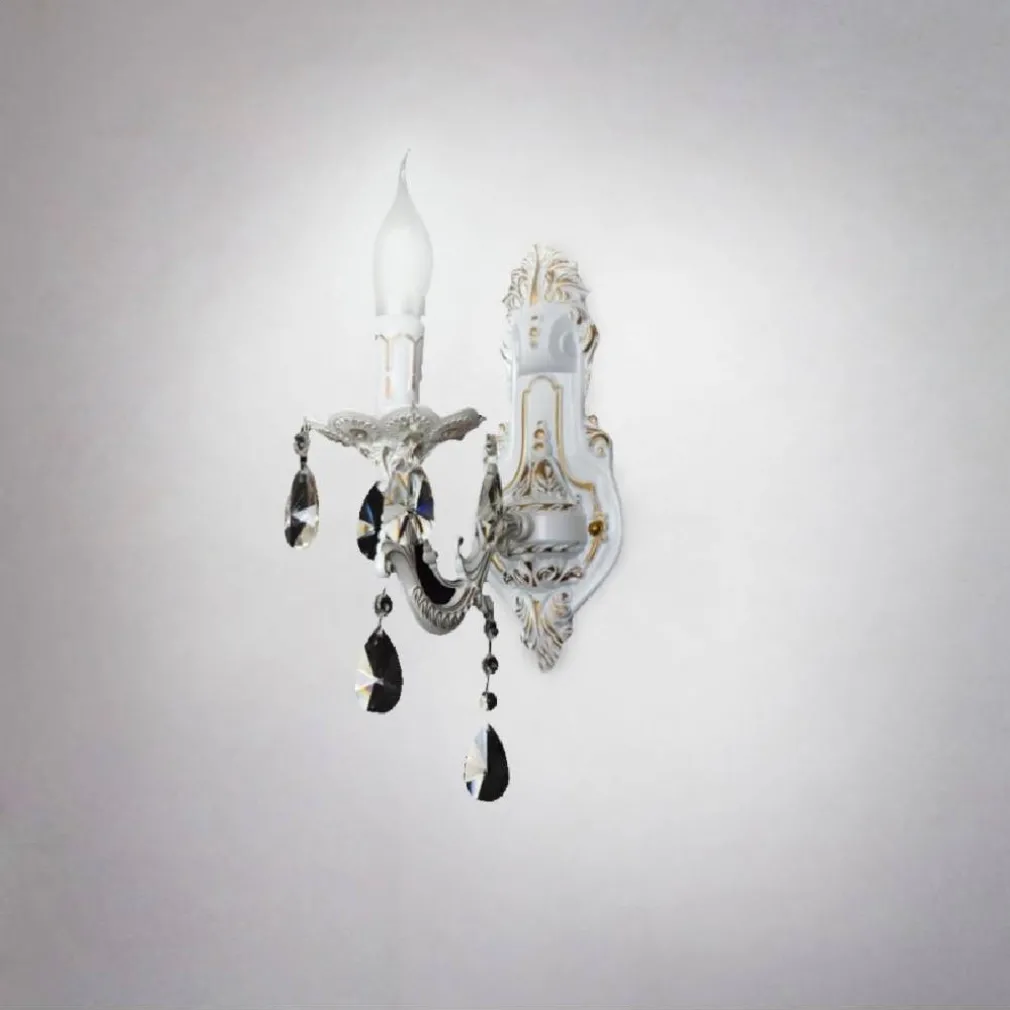 Applique da parete 1 braccio, attacco 1xE14 (lampadina non incluse), impreziosito da gocce pendenti vetro effetto cristallo. Crea un ambiente confortevole e classico con questa innovativa lampada da parete dal design vintage. Impreziosita da pendenti a forma di goccia in vetro effetto cristallo. I materiali utilizzati di alta qualità ne garantiscono una performance superiore e durata nel tempo. Le sue dimensioni la rendono facile da installare, semplice da utilizzare e facile da pulire. Questa lampada è adatta per camere da letto, salone, studio, corridoio, ecc.