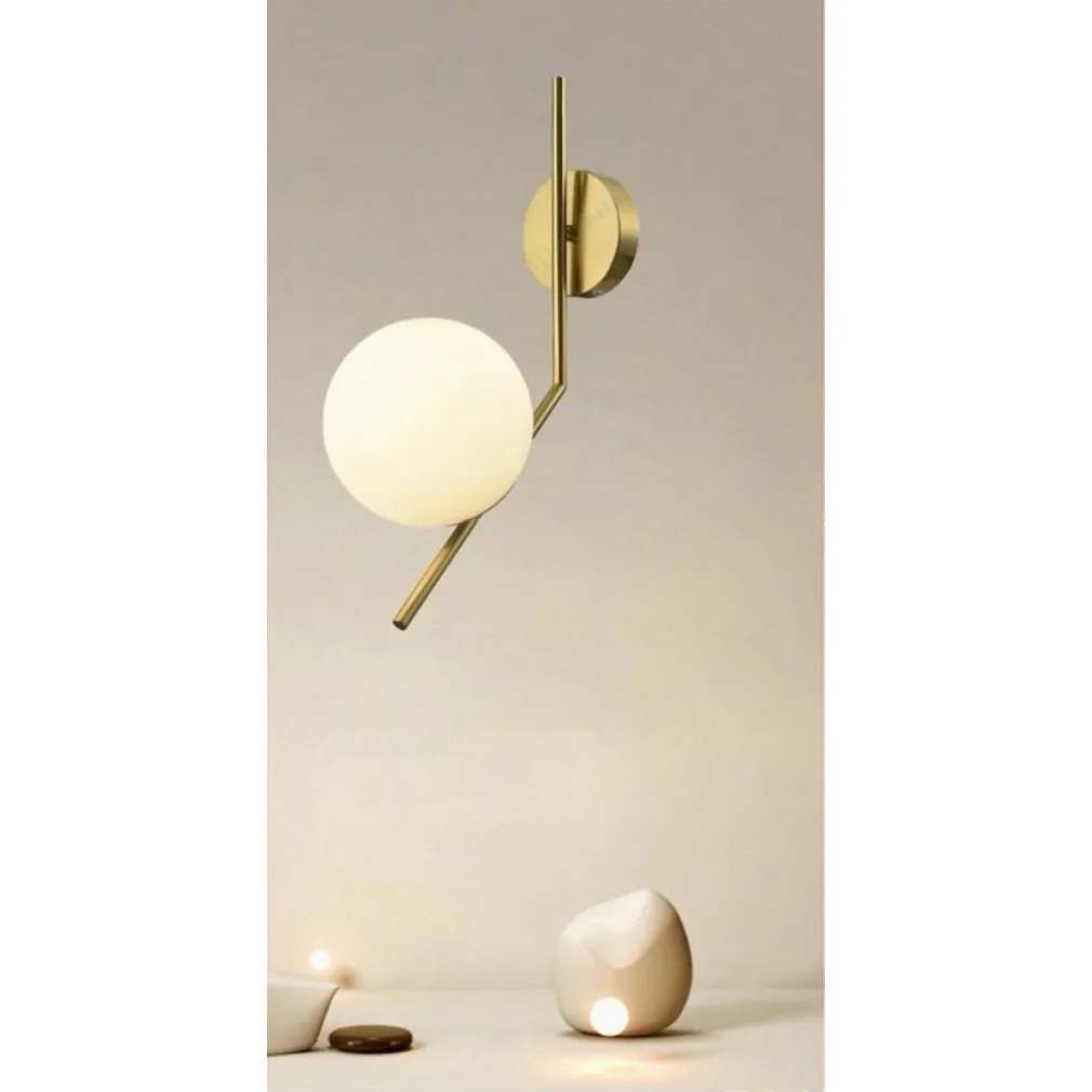 Realizzata con una struttura in metallo dorato con finitura satinata e un elegante paralume a sfera in vetro opaco bianco, questa applique unisce funzionalità ed estetica per offrire un’illuminazione morbida e accogliente. Che si tratti del soggiorno, della camera da letto o dello studio, questa lampada è progettata per rendere ogni ambiente più raffinato e moderno.