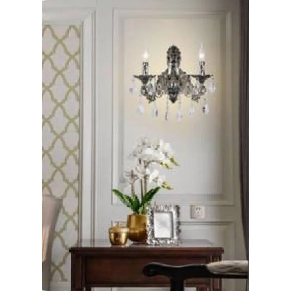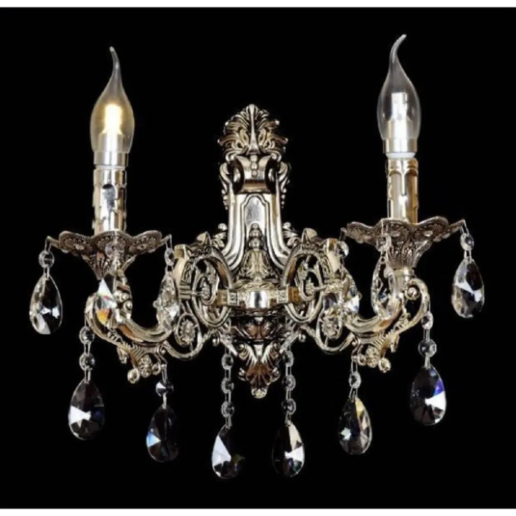 Applique da parete 2 bracci design classico, con pendenti a goccia in vetro cristallo, attacco E14 (lampadine non incluse). Crea un ambiente confortevole e classico con questa innovativa lampada da parete dal design vintage. Impreziosita da pendenti a forma di goccia in vetro effetto cristallo. I materiali utilizzati di alta qualità ne garantiscono una performance superiore e durata nel tempo. Le sue dimensioni la rendono facile da installare, semplice da utilizzare e facile da pulire. Questa lampada è adatta per camere da letto, salone, studio, corridoio, ecc.