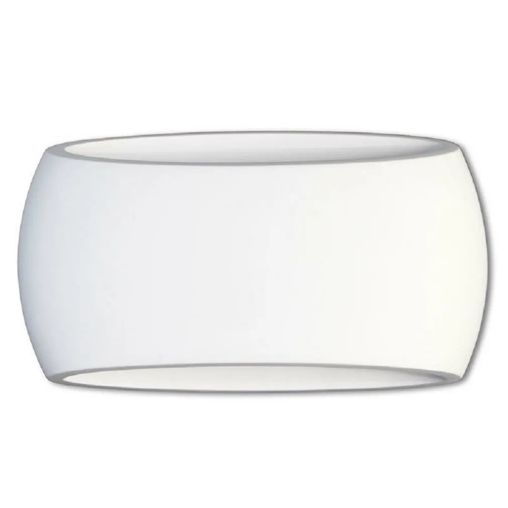 Applique da parete ovale in gesso a doppia emissione luminosa up e down verniciabile lampada con attacco r7S moderno IP20. Applique da parete ovale a doppia emissione “up e down”. Struttura completamente in gesso verniciabile. La base grezza consente di scegliere se lasciarli bianchi o verniciarli del colore desiderato. Facile da fissare con le viti in dotazione.