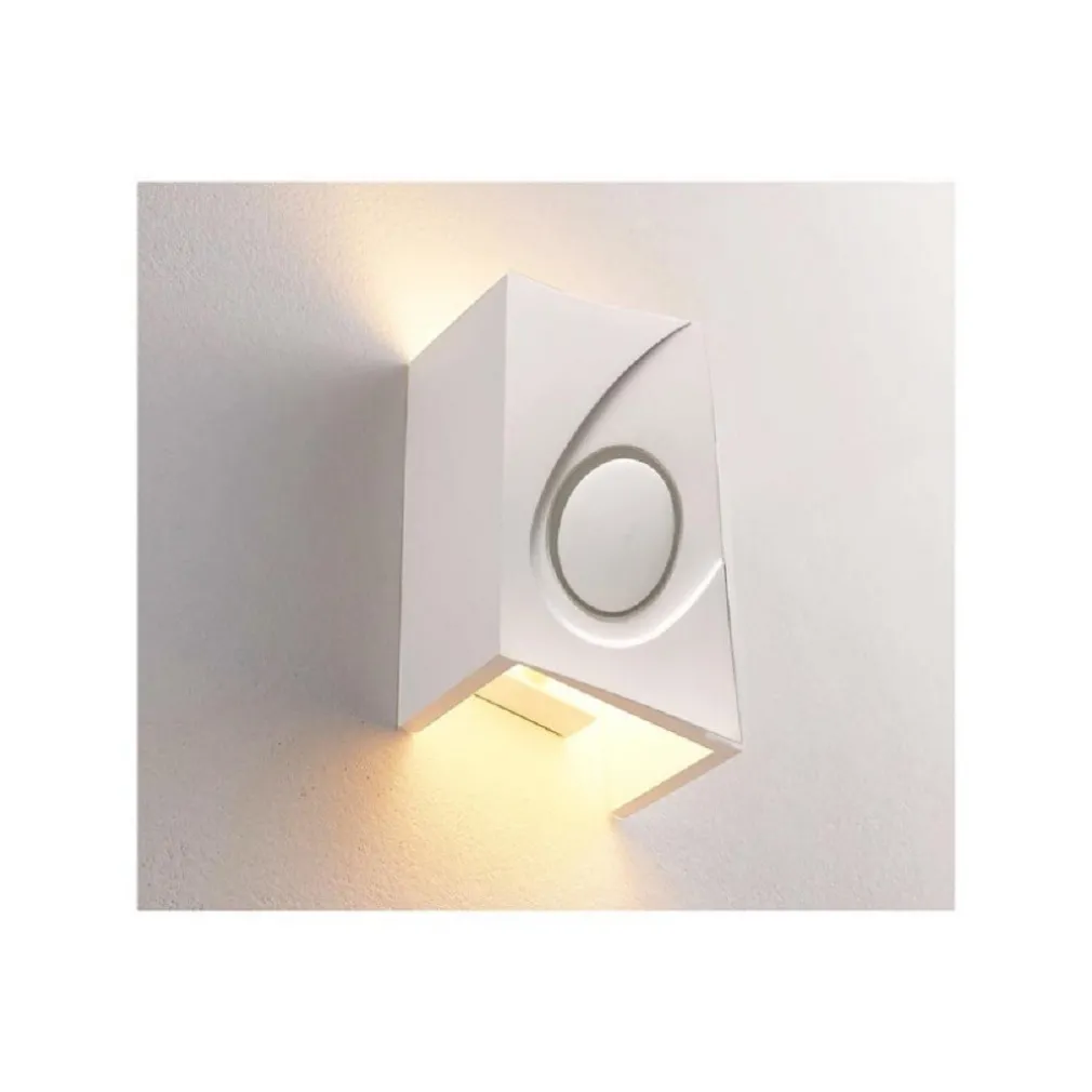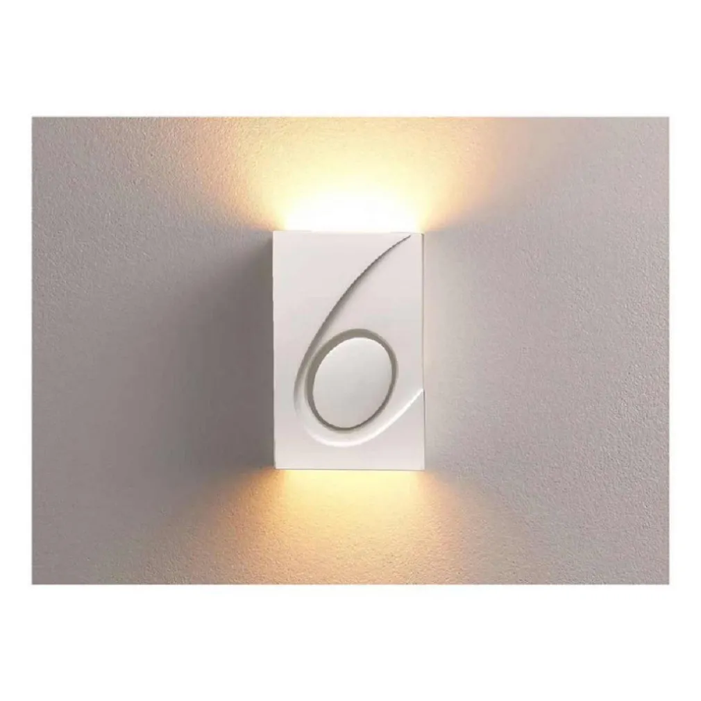 Lampada da parete decorativa, la cui versatilità la rende adatta a tutti gli interni. Dotata di con doppia emissione di luce verso l’alto e verso il basso. A seconda dell’effetto desiderato, la lampada può essere lasciata nella versione colore originale (bianco) o verniciata del colore che si desidera.