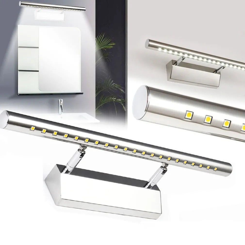 Applique lampada a parete per illuminare specchi del bagno, ma anche per illuminare quadri, vetrinette e altro ancora, è una lampada faretto da parete fatta d’acciaio inossidabile e cromo per i bagni. Indicata per l’illuminazione sullo specchio del lavabo all’interno del vostro bagno. Ideale per dare un tocco innovativo al vostro bagno grazie al bellissimo design di cui è caratterizzata questa lampada. Si collega direttamente all’impianto elettrico del vostro bagno.