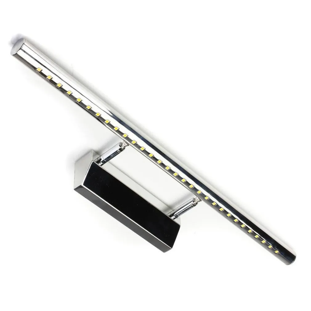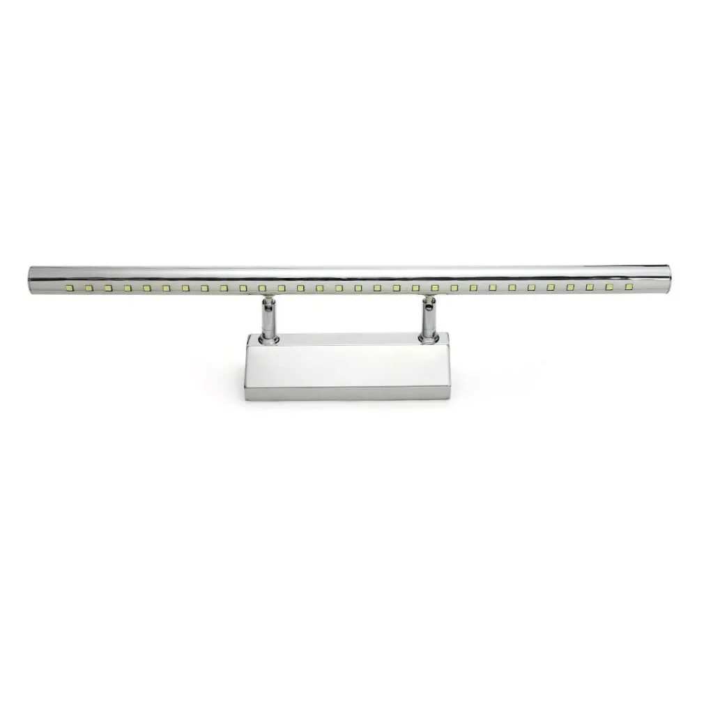 Applique dedicata per specchi da bagno, bellissima lampada da parete fatta d’acciaio inossidabile e cromo per ambienti internii. Indicata per l’illuminazione sullo specchio del lavabo all’interno del vostro bagno. Ideale per dare un tocco innovativo al vostro bagno grazie al bellissimo design di cui è caratterizzata questa lampada. Si collega direttamente all’impianto elettrico del vostro bagno. Questo prodotto può essere utilizzato anche per illuminare quadri o nicchie, trattasi di un prodotto molto versatile.