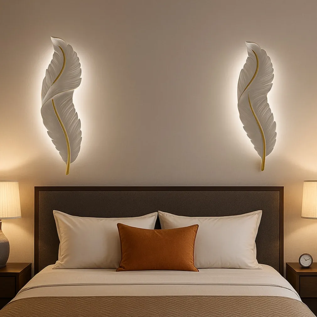 Cosa rende unica questa applique LED a forma di piuma?
