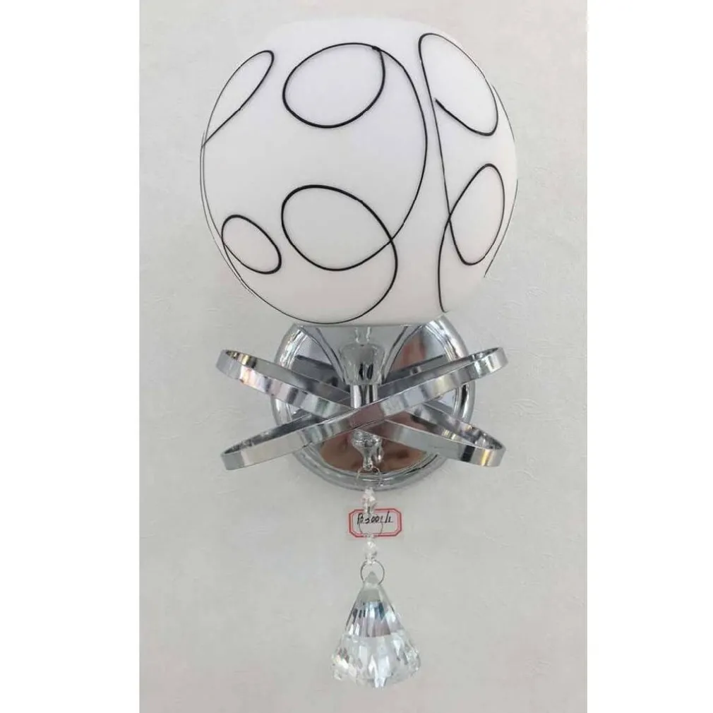 APPLIQUE MODERNO PARALUME VETRO SFERA BIANCA NERA PENDENTE CRISTALLO ARGENTO E10