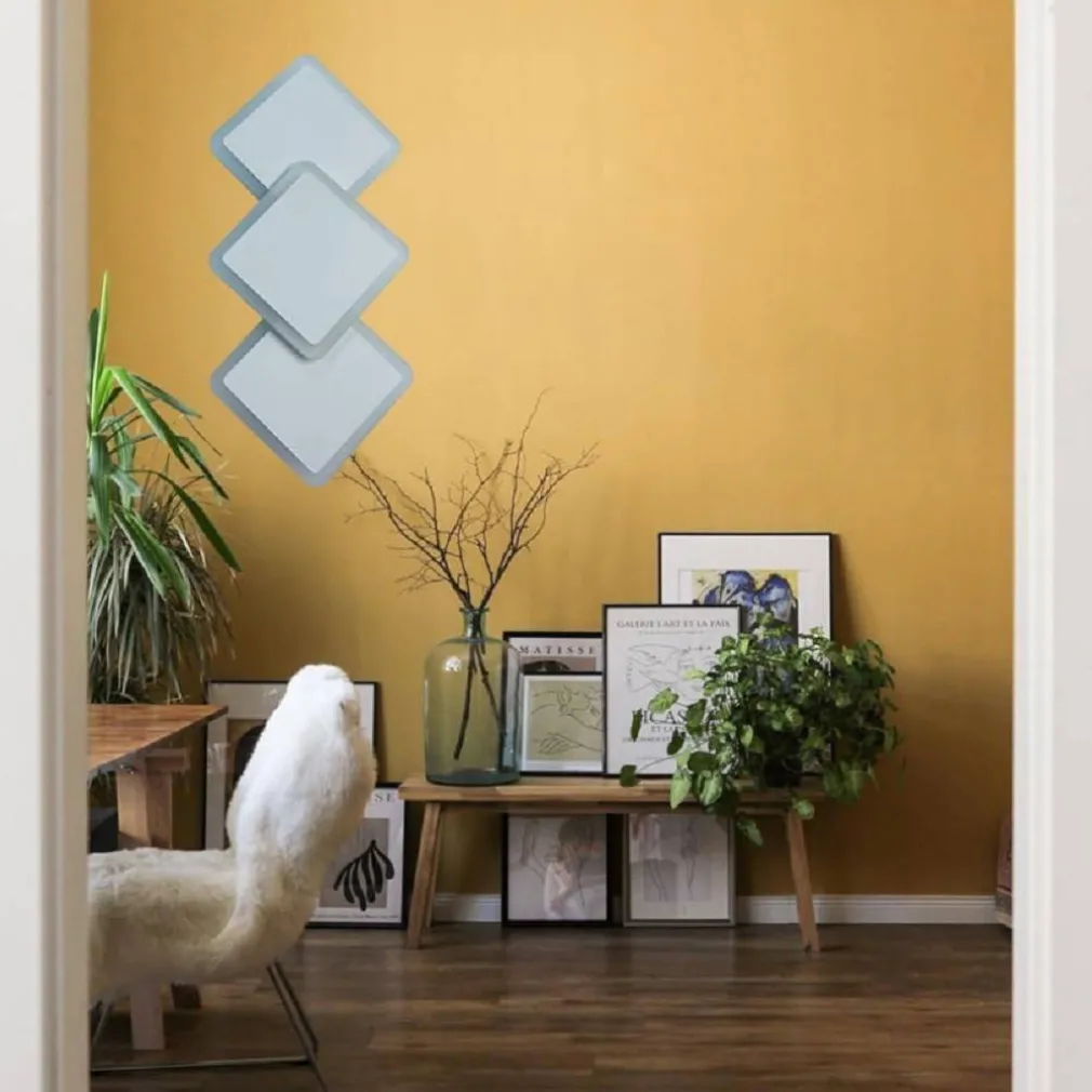 Applique a parete a led dal design moderno composto da tre rombi sovrapposti, adatta per illuminare gli interni di casa, ufficio e altro ancora. Il diffusore opaco consente un’illuminazione più uniforme senza abbagliare la vista. Composta da tripla accensione a luce fredda, calda e naturale e dotata di memoria interna che si attiva dopo 10 secondi dallo spegnimento e memorizza l’ultima tonalità di luce scelta.