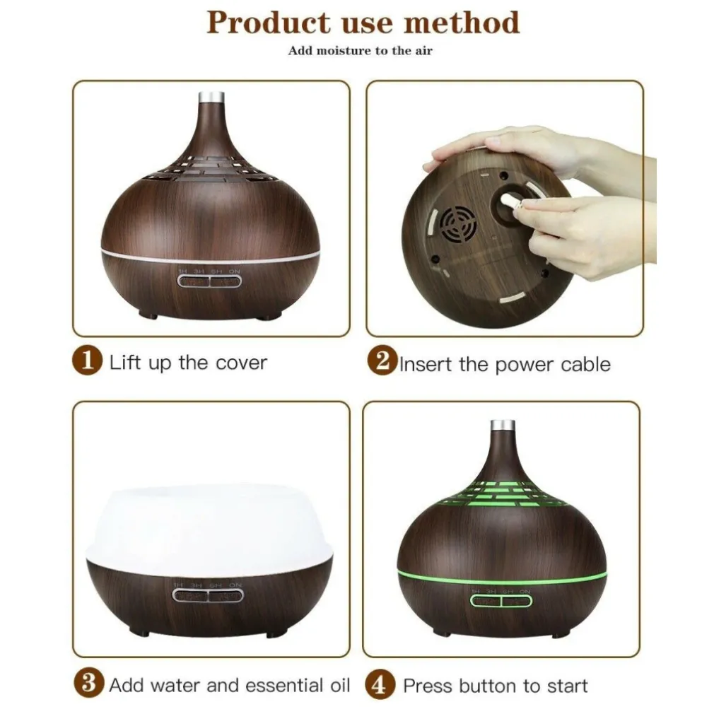 Diffusore di aromi, pratico elegante e di qualità. Offre un odore gradevole e crea un atmosfera piacevole con l’aria fresca. La luce cambia colore secondo le tue preferenze con sfumature molto piacevoli automaticamente. È di piccole dimensioni e può essere spostato in qualunque posto. Serbatoio di grande capacità da 400 ml, in grado di garantire un utilizzo senza interruzioni fino a 1-3-6 ore utilizzando la funzione timer presente sul dispositivo. Questo diffusore di aromi è una bella aggiunta per la salute, la bellezza o il benessere, garantisce un’umidità costante per la pelle, profuma delicatamente l’ambiente ed è molto economico come consumi sia in termini di quantità d’essenza che di corrente elettrica. Oltre ad essere funzionale è inoffensivo al corpo umano, funziona con onde ultrasonore ed è un complemento d’arredo che dona un tocco di classe alla casa.