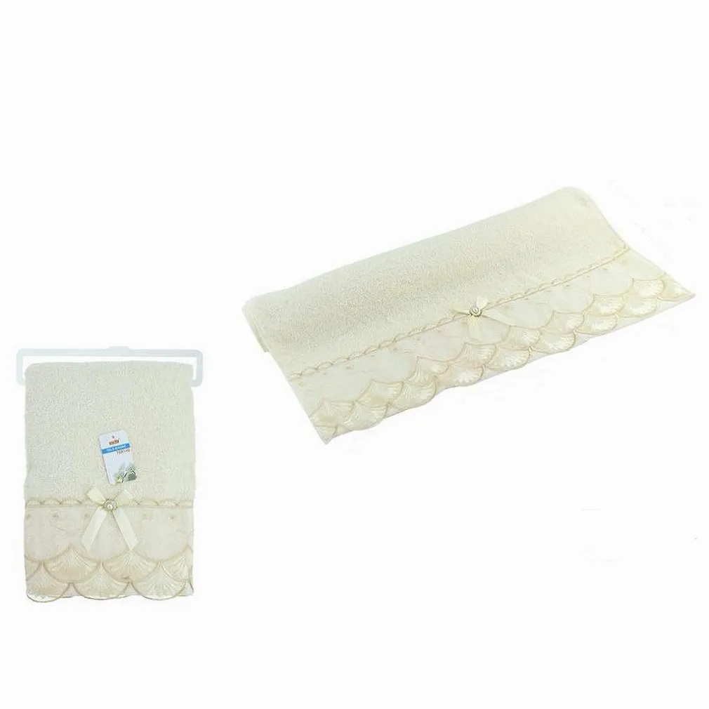 - 1 x Asciugamano bagno telo in cotone decorato misura 70x140cm, 380gr, colore beige chiaro