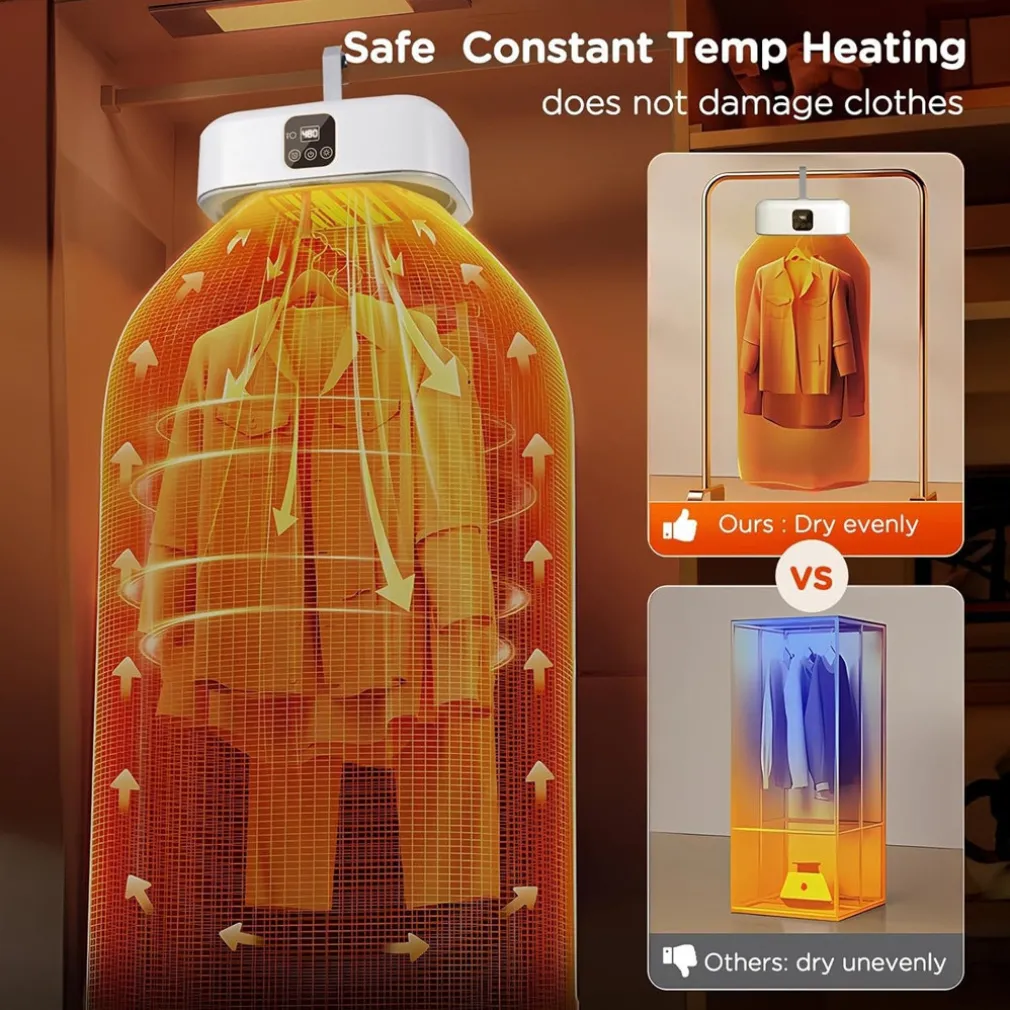 È perfetta per asciugare camicie, cappotti, biancheria intima, abbigliamento sportivo e tanto altro, coprendo sia le esigenze quotidiane che quelle d’emergenza.