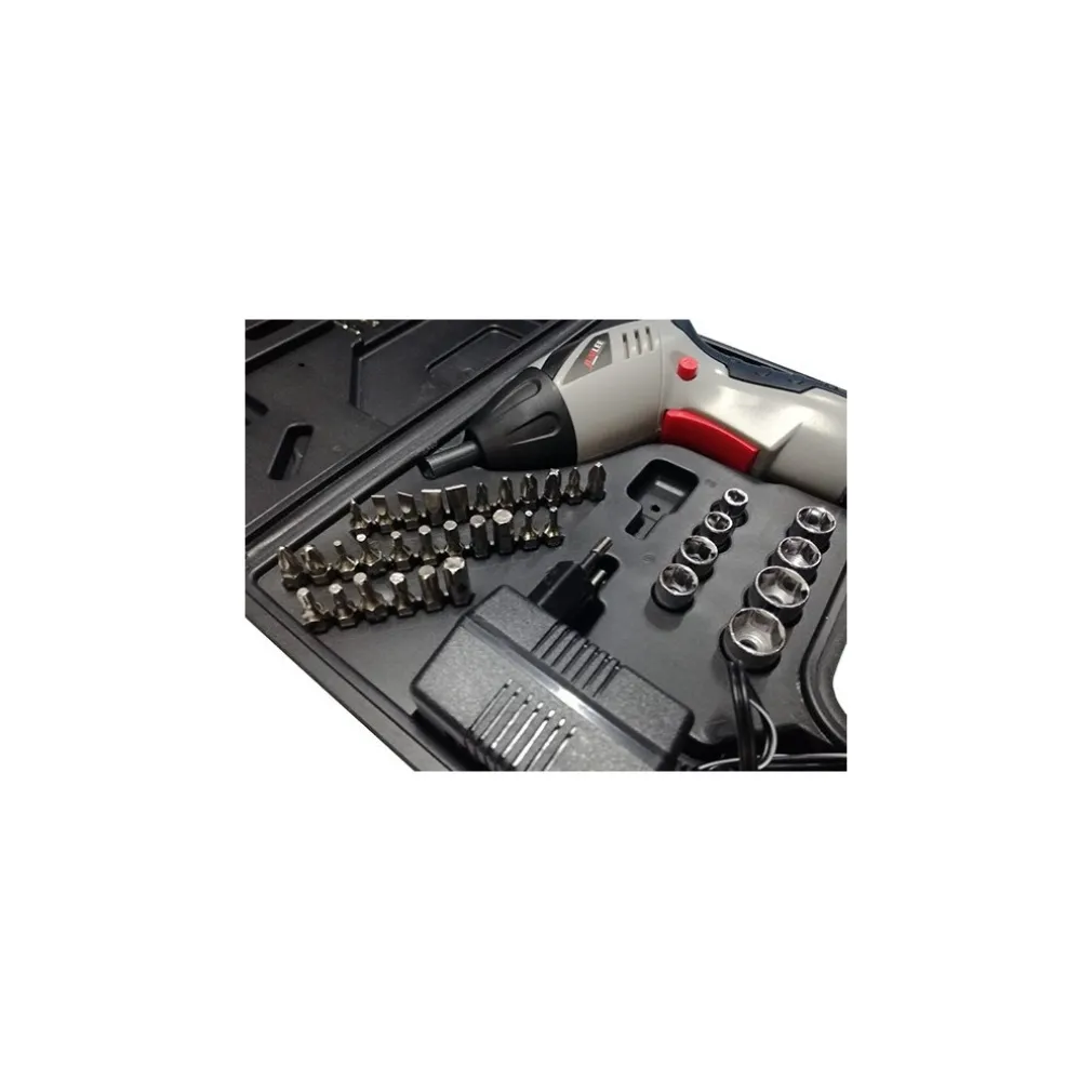 Tutta le tue riparazioni quotidiane a portata di mano in una piccola e pratica valigetta trasportabile. Questo kit per cacciaviti Avvitatore alimentato a (4,8 V) è dotato di un cacciavite elettrico, 44 pezzi aggiuntivi e punte per avvitare, 1 caricabatteria e la custodia.