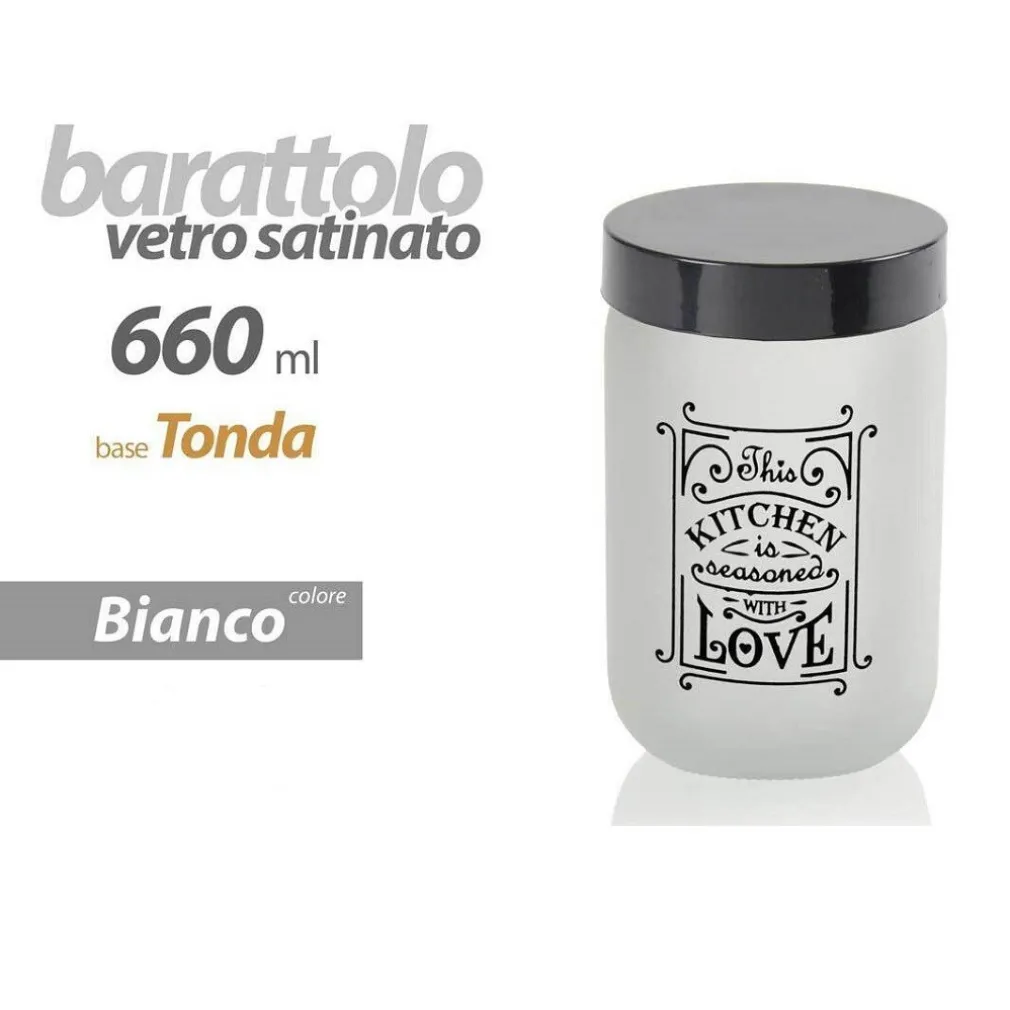 BARATTOLO CONTENITORE VETRO BIANCO LOVE MODERNO SATINATO TONDA 660ML 833458
