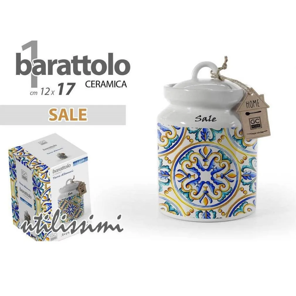 BARATTOLO SALE CERAMICA ERMETICO CUCINA BIANCO COLOR MEDITERRANEO 17X12CM 817113