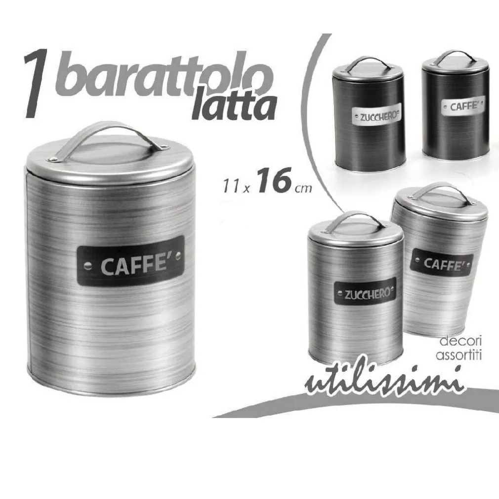 - 1 Barattolo Contenitore Zucchero/Caffè in Latta Satinato Moderno 11x16cm 759819.