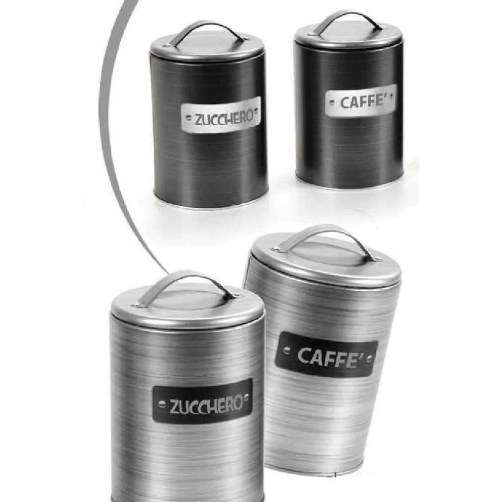 Barattolo Contenitore Zucchero/Caffè in Latta Satinato Moderno 11x16cm 759819