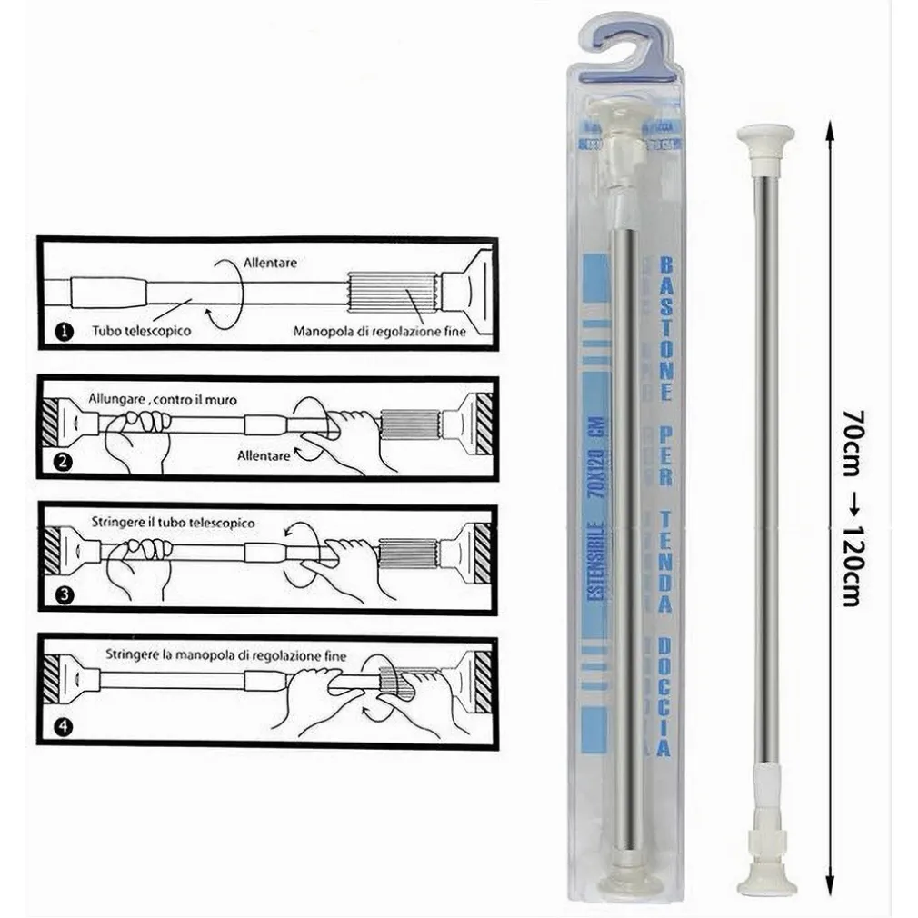 Può essere utilizzato in armadi, cabine armadio, vetrine, tende da doccia o per altri utilizzi domestici. Grazie alla sua regolabilità e design, si adatta a qualsiasi ambiente. -