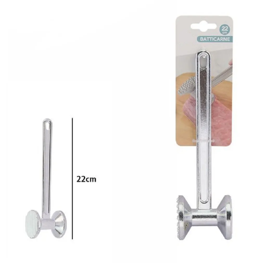 Misura Perfetta: Con una lunghezza di 22 cm, questo batticarne è ergonomicamente progettato per adattarsi comodamente alla tua mano, garantendo un controllo totale durante l’uso. La sua dimensione compatta lo rende facile da riporre in cucina.