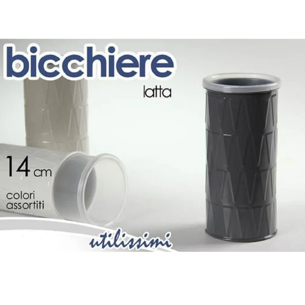 - 1 bicchiere porta spazzolino in latta 6×14 cm (colore assortito).