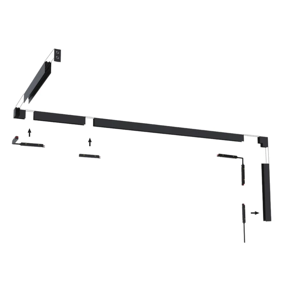 È realizzato in alluminio nero di alta qualità e dotato di contatti in rame, che garantiscono una connessione stabile e duratura. Il sistema magnetico consente di installare, spostare e combinare i corpi illuminanti con estrema facilità.