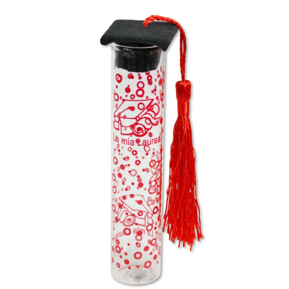 Festeggia il tuo traguardo più importante con il nostro esclusivo set di 12 portaconfetti in vetro, un’aggiunta sofisticata ed originale per ogni celebrazione significativa. Ogni tubetto, rifinito con un elegante cappello da laurea con nappa, rappresenta un simbolo di successo e buon auspicio.