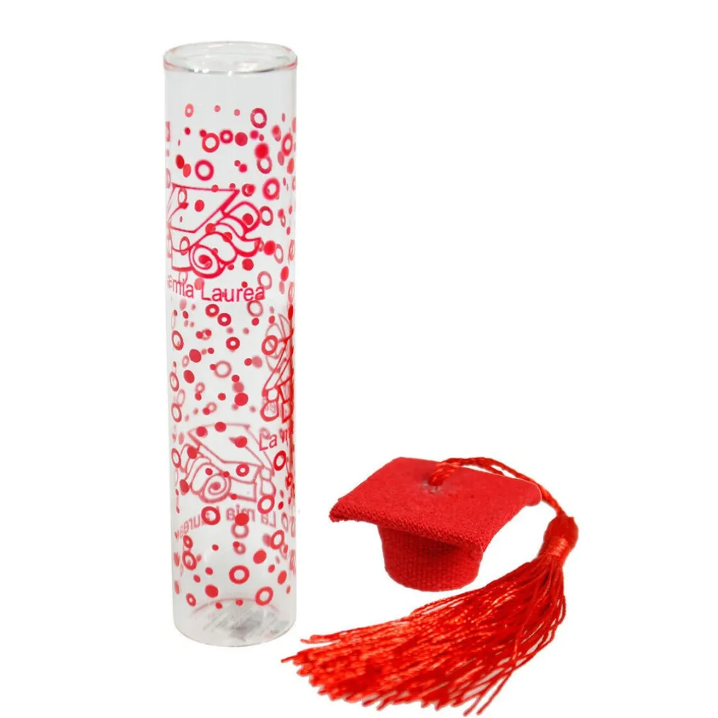 - Forma Unica: Tubetto con un elegante cappello da laurea e nappa, simbolo del tuo successo accademico.